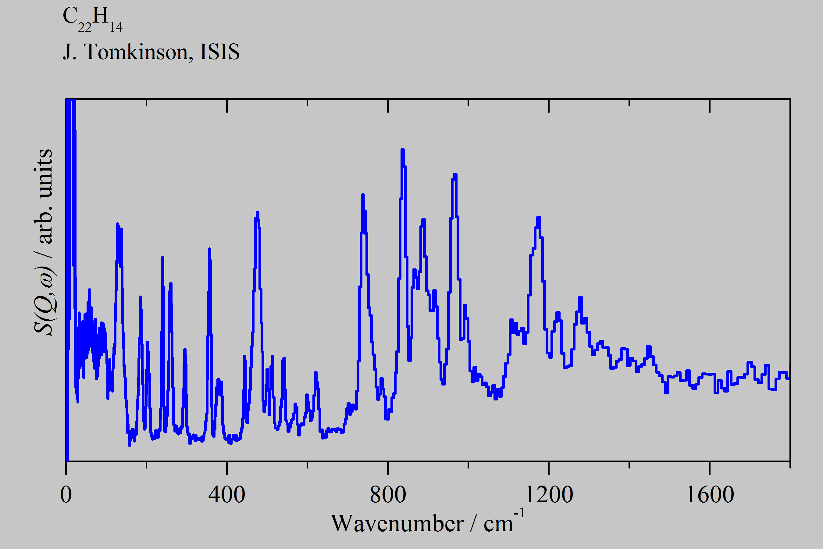 Inelastic Neutron Scattering spectrum of Pentacene, C₂₂H₁₄, measured on the TOSCA instrument.