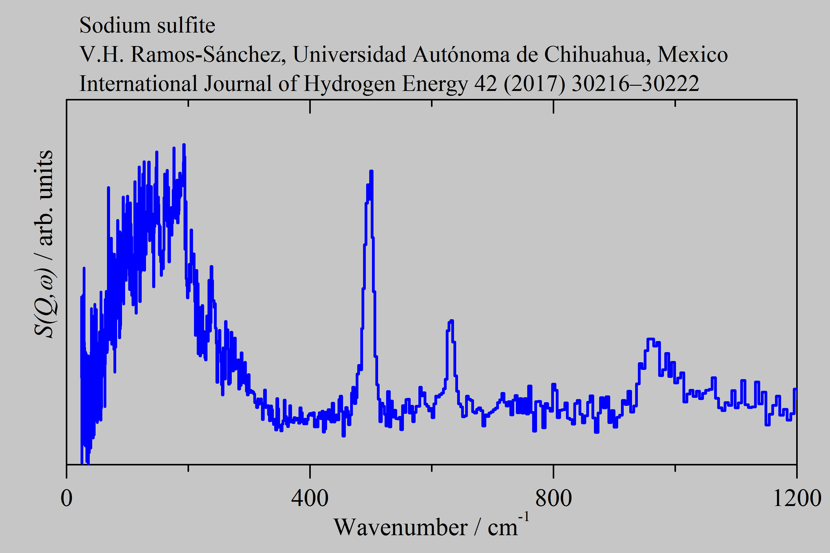 Inelastic Neutron Scattering spectrum of Sodium sulfite, Na2SO3, measured on the TOSCA instrument.