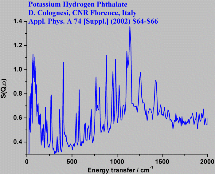Inelastic Neutron Scattering spectrum of Potassium hydrogen phthalate, C₈H₅O₄K, measured on the TOSCA instrument.