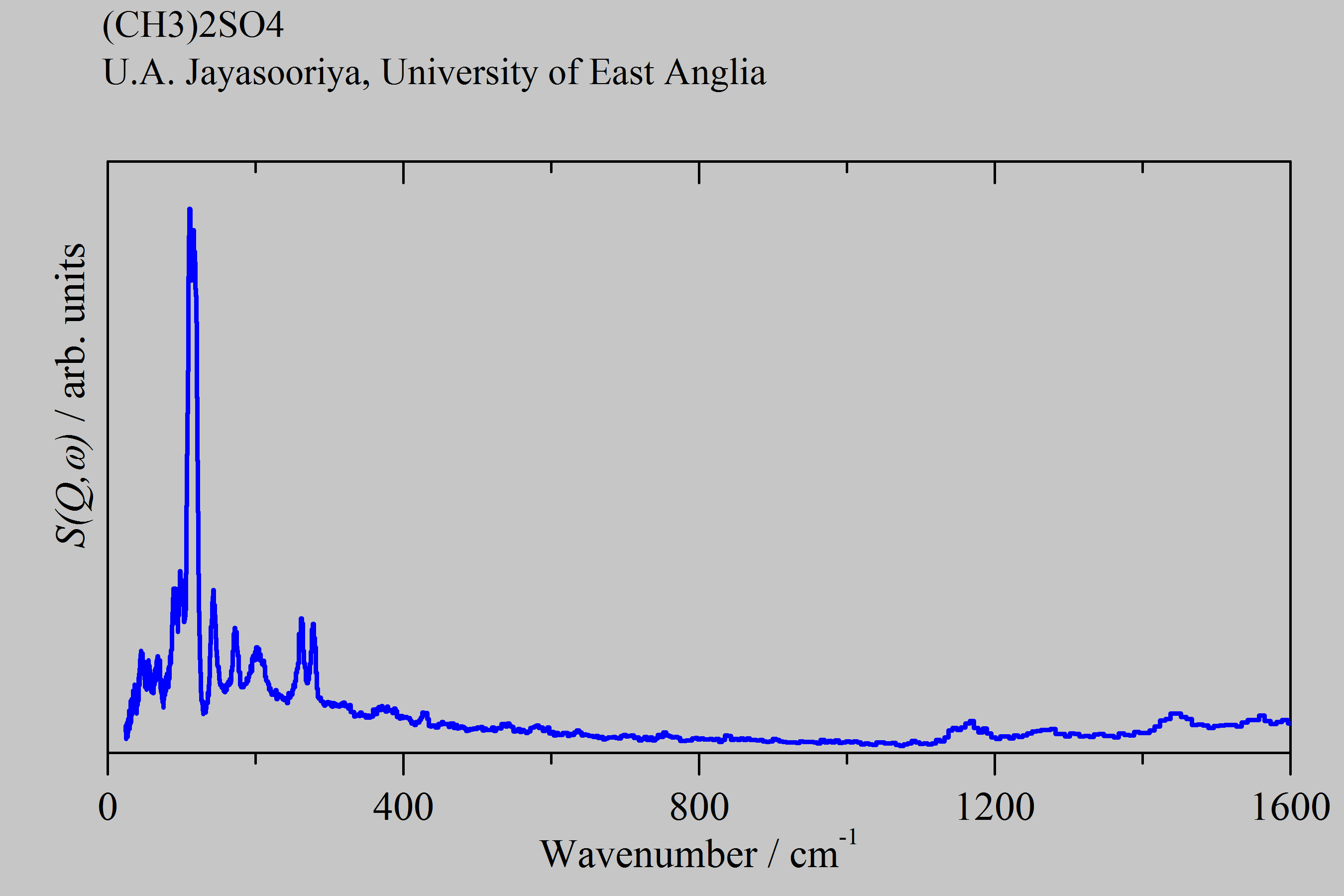 | dc.description.abstract | Inelastic Neutron Scattering spectrum of Dimethylsulphate, (CH₃)₂SO₄, measured on the TOSCA instrument. | |