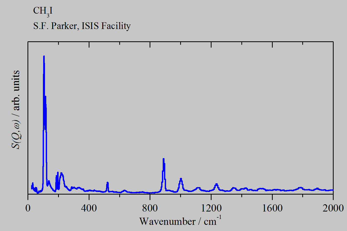 Inelastic Neutron Scattering spectrum of Iodomethane, CH₃I, measured on the TOSCA instrument.