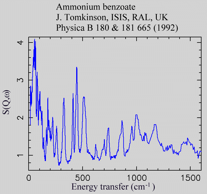 Inelastic Neutron Scattering spectrum of Ammonium benzoate, C₇H₉NO₂, measured on the TFXA instrument.