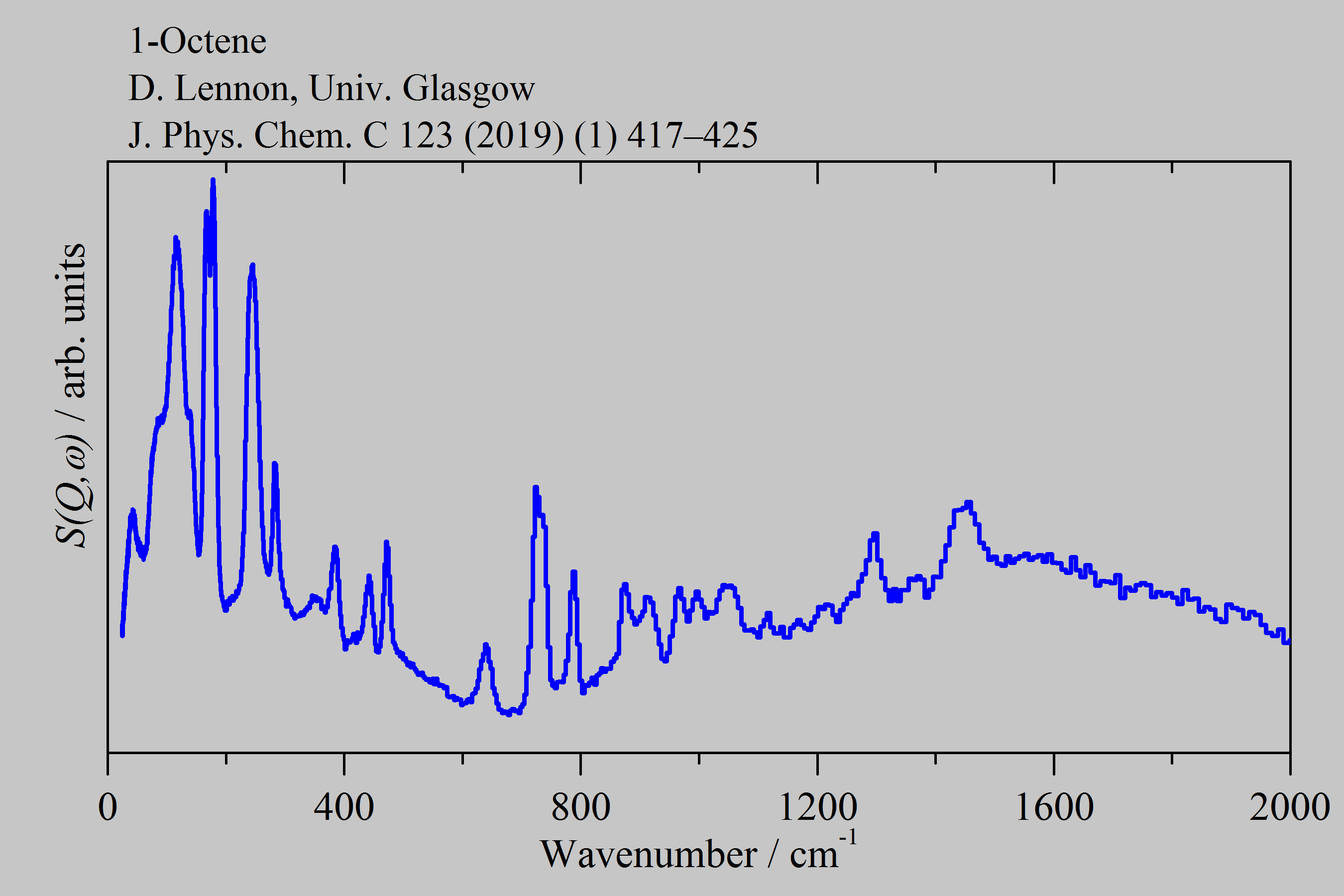 Inelastic Neutron Scattering spectrum of 1-Octene, C8H10, measured on the TOSCA instrument.