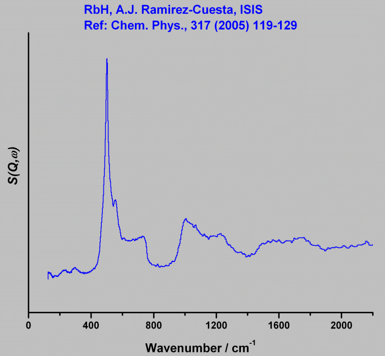 Inelastic Neutron Scattering spectrum of Rubidium hydride, RbH, measured on the TOSCA instrument.