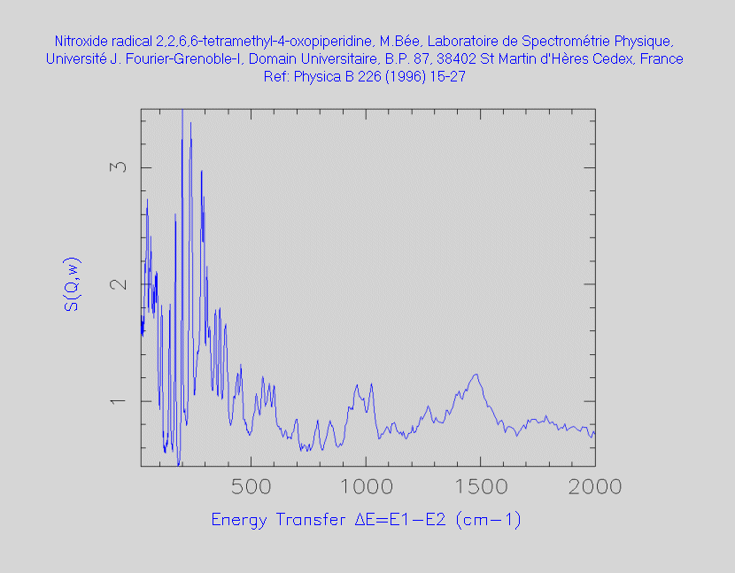 Inelastic Neutron Scattering spectrum of Nitroxide radical 2,2,6,6-tetramethyl-4-oxopiperidine, C₉H₁₄NO₂, measured on the TFXA instrument.
