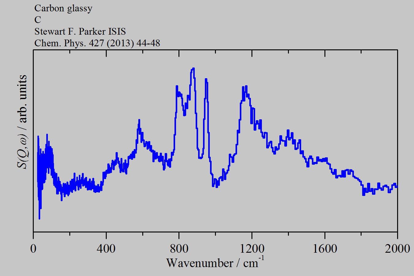 Inelastic Neutron Scattering spectrum of Carbon glassy, C, measured on the TOSCA instrument. Type 1 glassy carbon (carbonization temperature is <1000 C)..