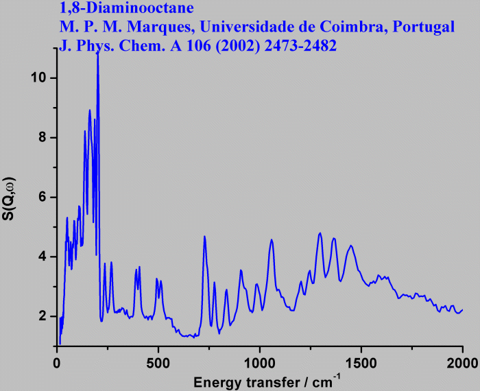 Inelastic Neutron Scattering spectrum of 1,8-Diaminooctane, H₂N-(CH₂)n-NH₂ n=octane, measured on the TOSCA instrument.