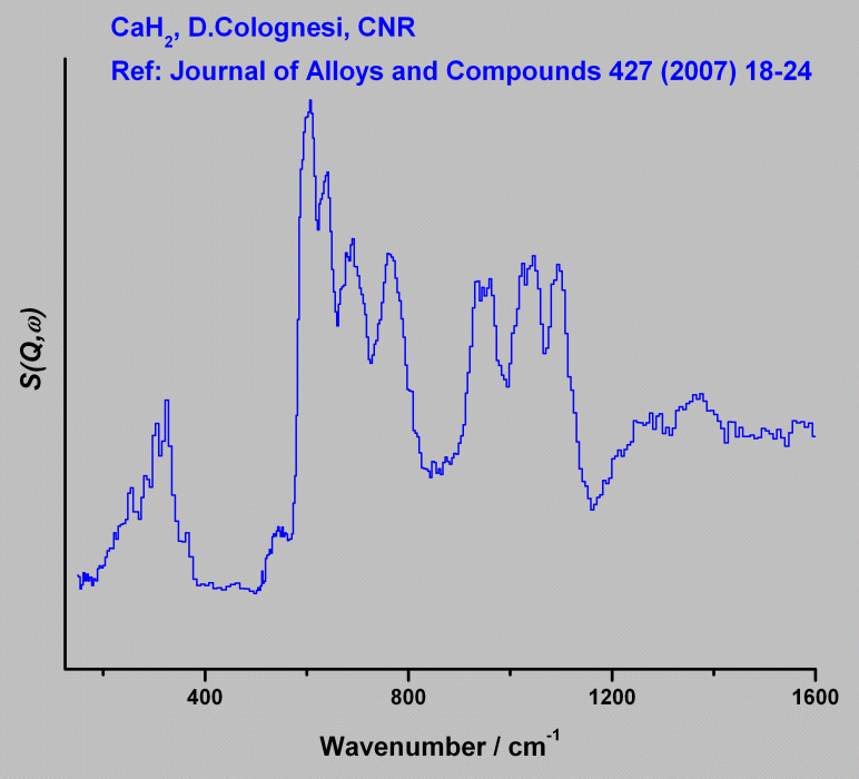 Inelastic Neutron Scattering spectrum of Calcium hydride, CaH₂, measured on the TOSCA instrument.