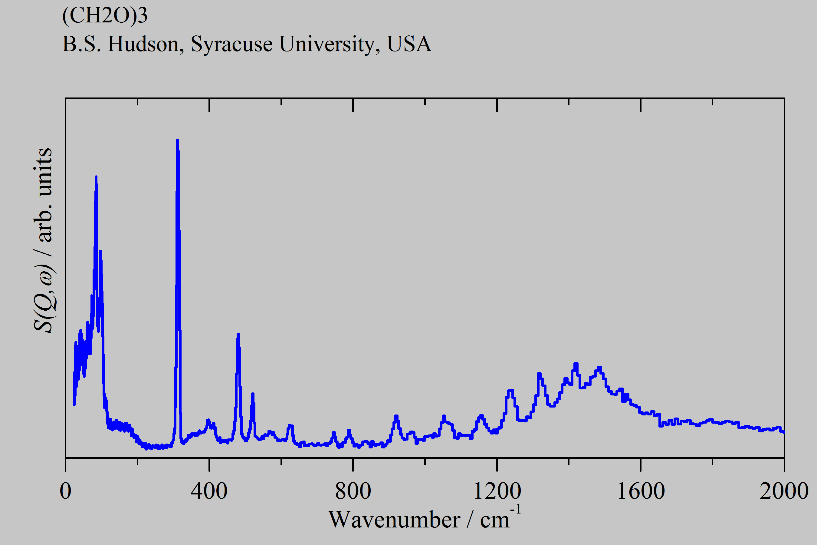 Inelastic Neutron Scattering spectrum of 1,3,5-Trioxane, (CH₂O)₃, measured on the TOSCA instrument.