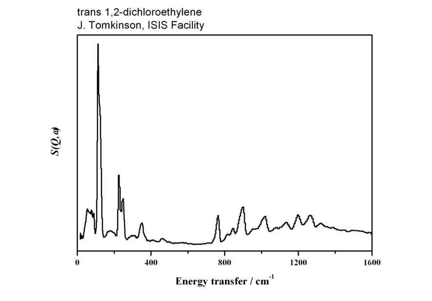 Inelastic Neutron Scattering spectrum of trans 1,2-Dichloroethylene, C₂H₂Cl₂, measured on the TFXA instrument.