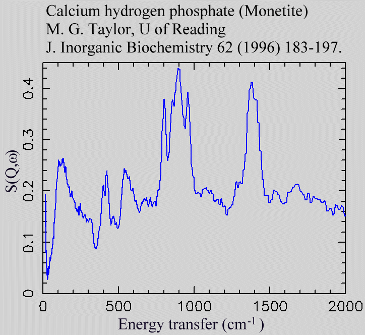 | dc.description.abstract | Inelastic Neutron Scattering spectrum of Calcium hydrogen phosphate, CaHPO₄, measured on the TFXA instrument. Monetite. | |