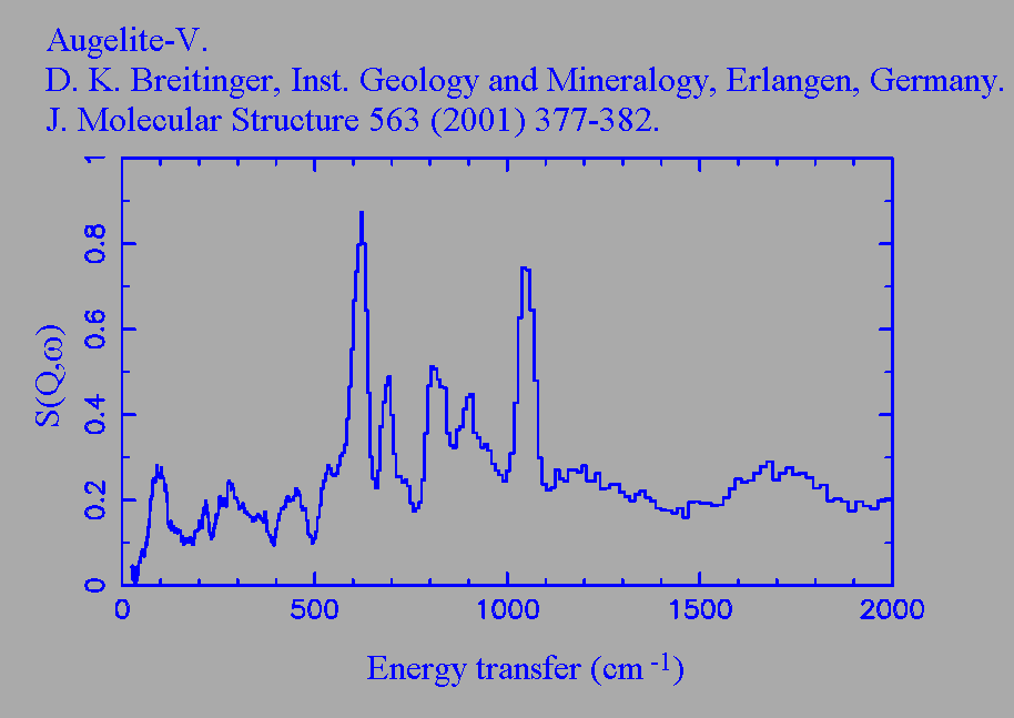 Inelastic Neutron Scattering spectrum of Augelite-V, Al₂(OH)₃(VO₃), measured on the TOSCA-1 instrument.