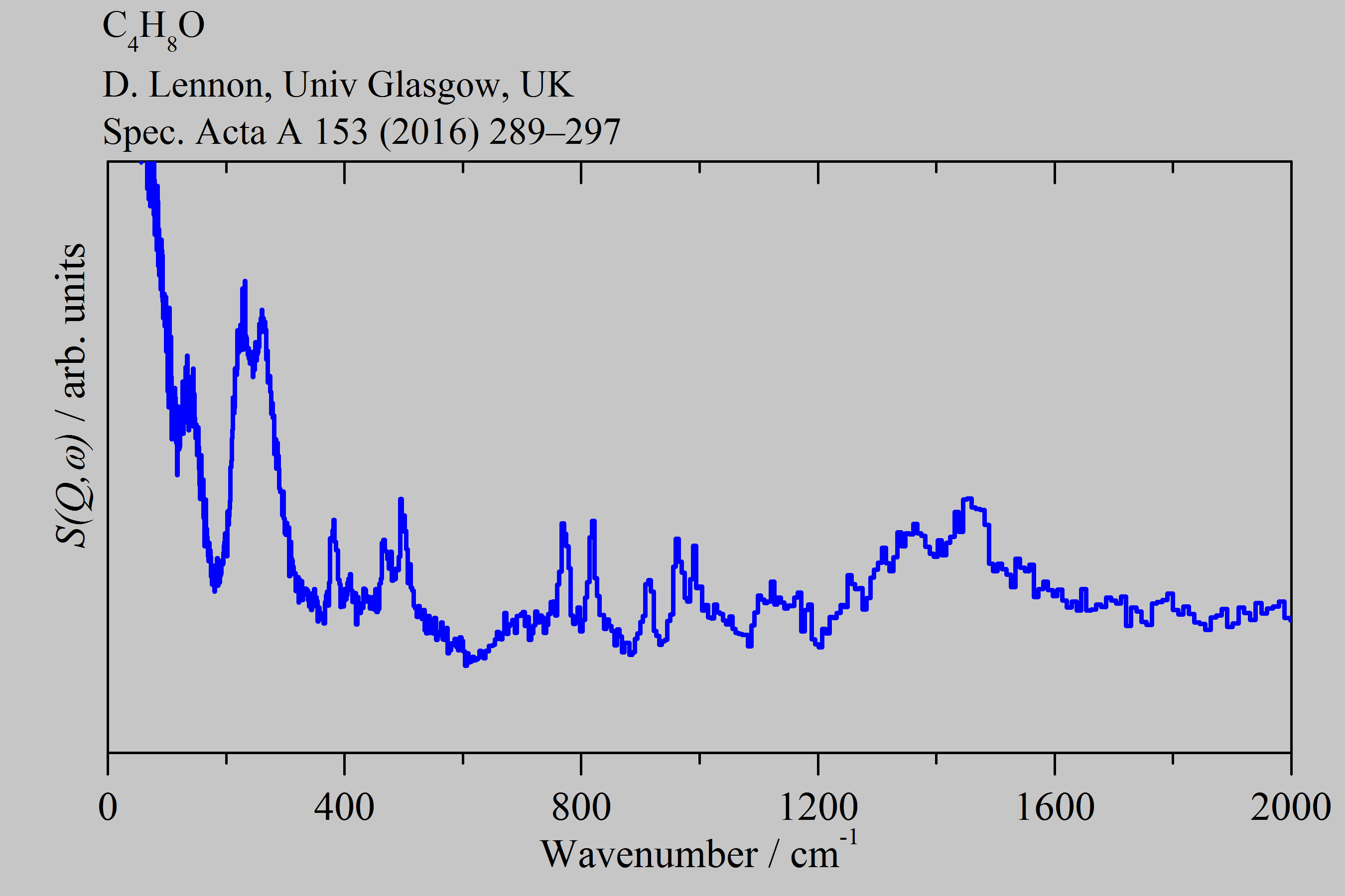 Inelastic Neutron Scattering spectrum of 2-Butanol, C₄H₈O, measured on the TOSCA instrument. Isobutanol, CH₃-CH(OH)-CH₂CH₃.
