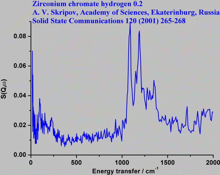 Inelastic Neutron Scattering spectrum of Zirconium chromium hydrogen 0.2, ZrCrH0.2, measured on the TFXA instrument.