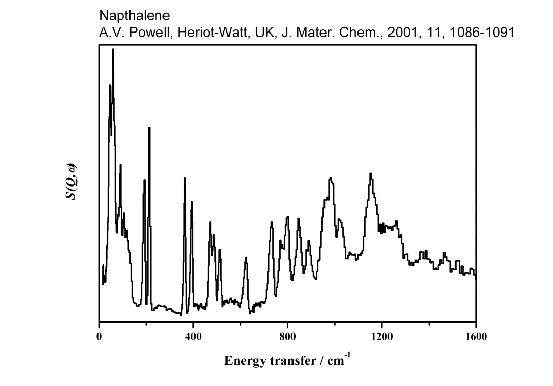 Inelastic Neutron Scattering spectrum of Napthalene, C₁₀H₈, measured on the TFXA instrument.