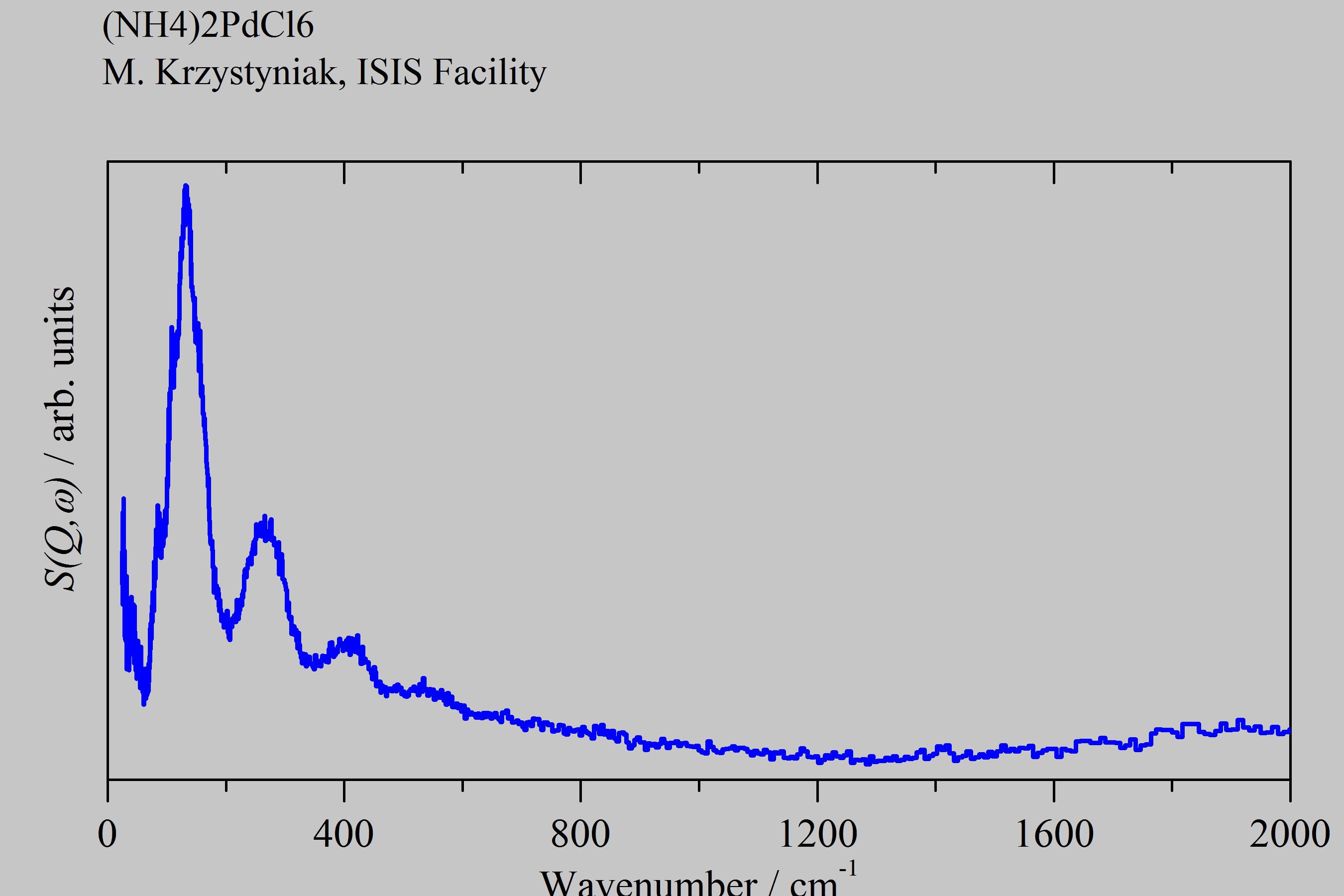 Inelastic Neutron Scattering spectrum of Ammonium hexachloropalladate, (NH₄)₂PdCl₆, measured on the TOSCA instrument.