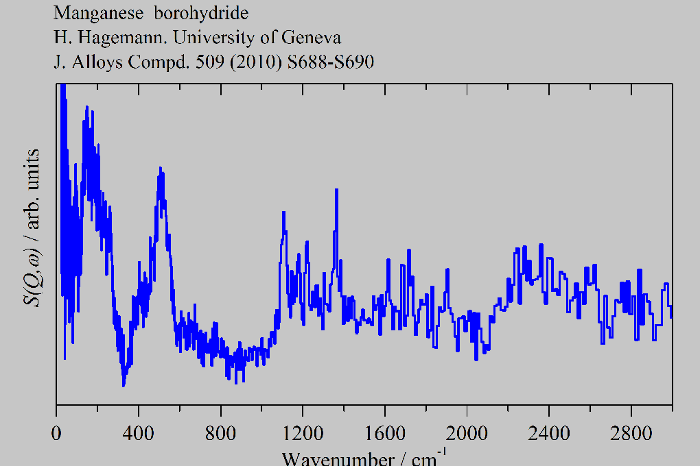Inelastic Neutron Scattering spectrum of Manganese borohydride, Mn(BH₄)₂, measured on the TOSCA instrument.