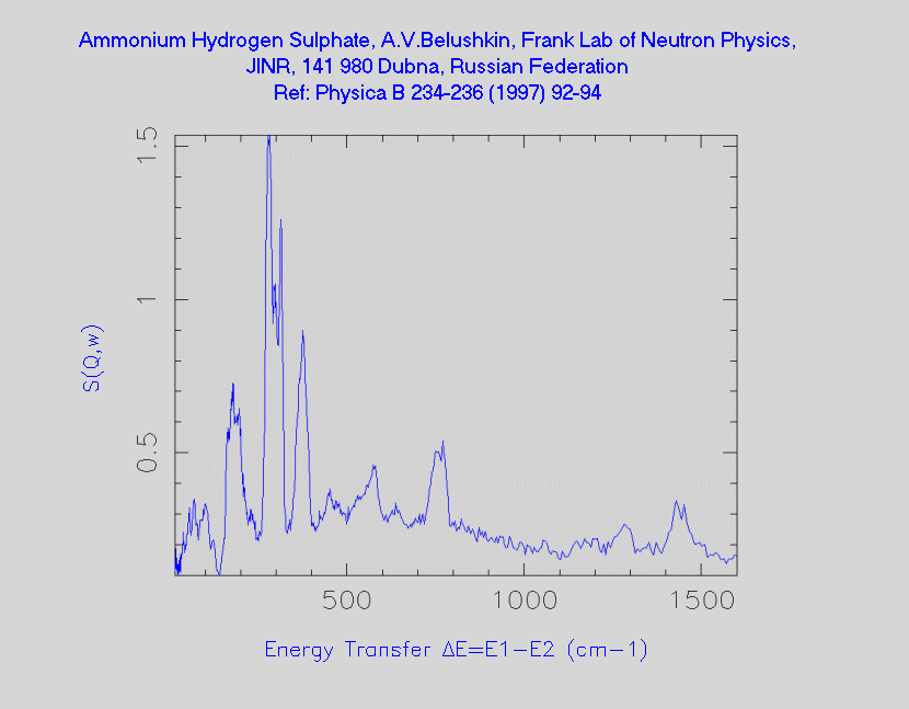 Inelastic Neutron Scattering spectrum of Ammonium hydrogen sulphate, NH₄HSO₄, measured on the TFXA instrument.