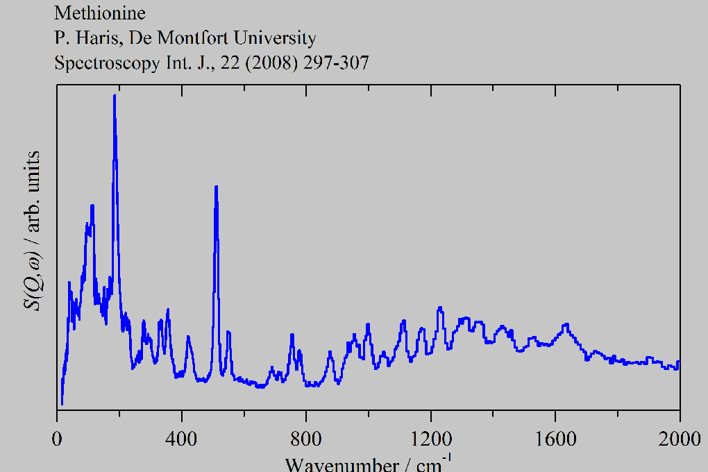 Inelastic Neutron Scattering spectrum of Methionine, C₅H₁₁NO₂S, measured on the TOSCA-1 instrument.