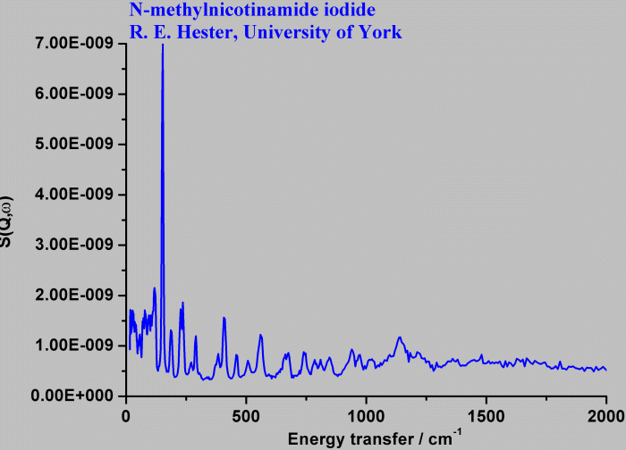Inelastic Neutron Scattering spectrum of N-methylnicotinamide iodide, C₇H₉NO, measured on the TFXA instrument.