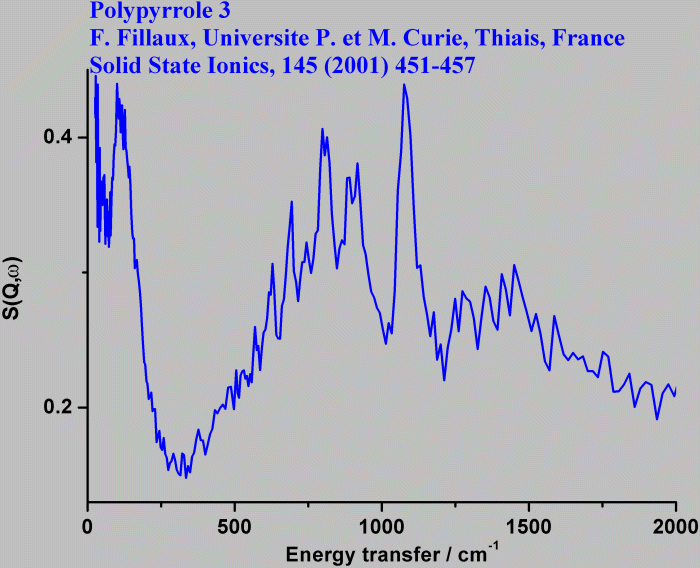 Inelastic Neutron Scattering spectrum of Polypyrrole (III), (C4H3N)nCl0.33, measured on the TOSCA instrument.