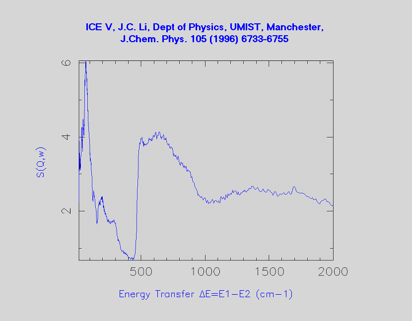 Inelastic Neutron Scattering spectrum of Ice V, H₂O, measured on the TFXA instrument.