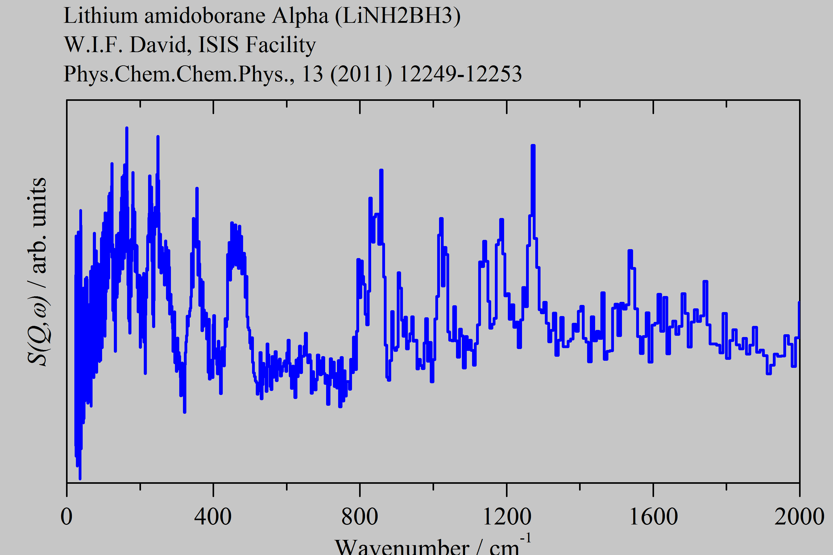 Inelastic Neutron Scattering spectrum of Lithium amidoborane Alpha, LiNH₂BH₃, measured on the TOSCA instrument. Natural abundance Li and B.