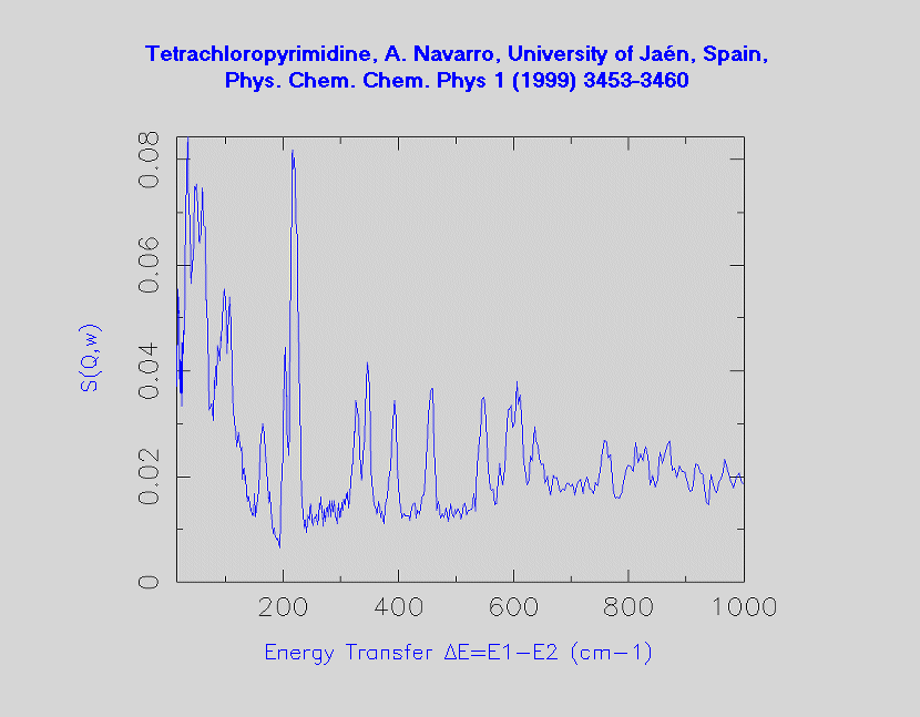 Inelastic Neutron Scattering spectrum of Tetrachloropyrimidine, C₄ Cl₄ N₂, measured on the TFXA instrument.