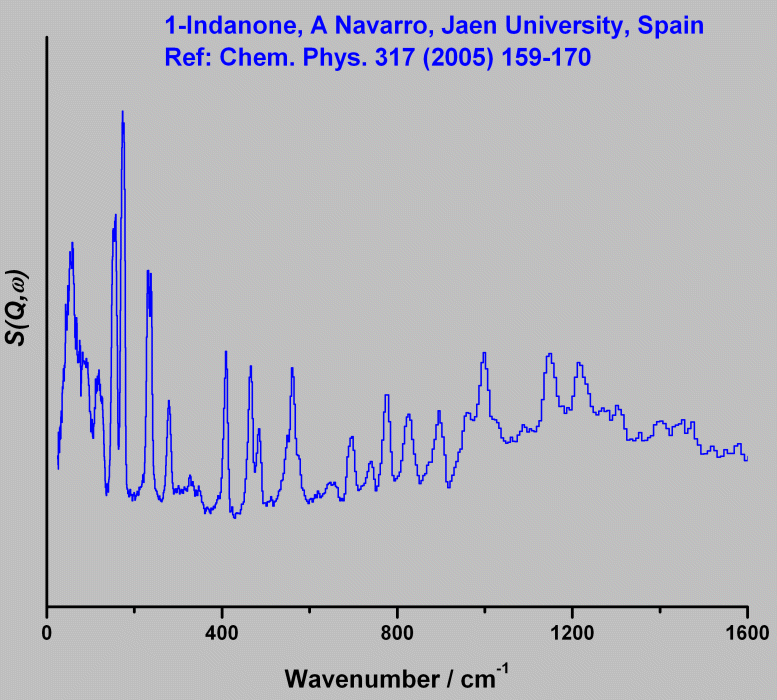 Inelastic Neutron Scattering spectrum of 1- Indanone, C₆H₈O, measured on the TFXA instrument.