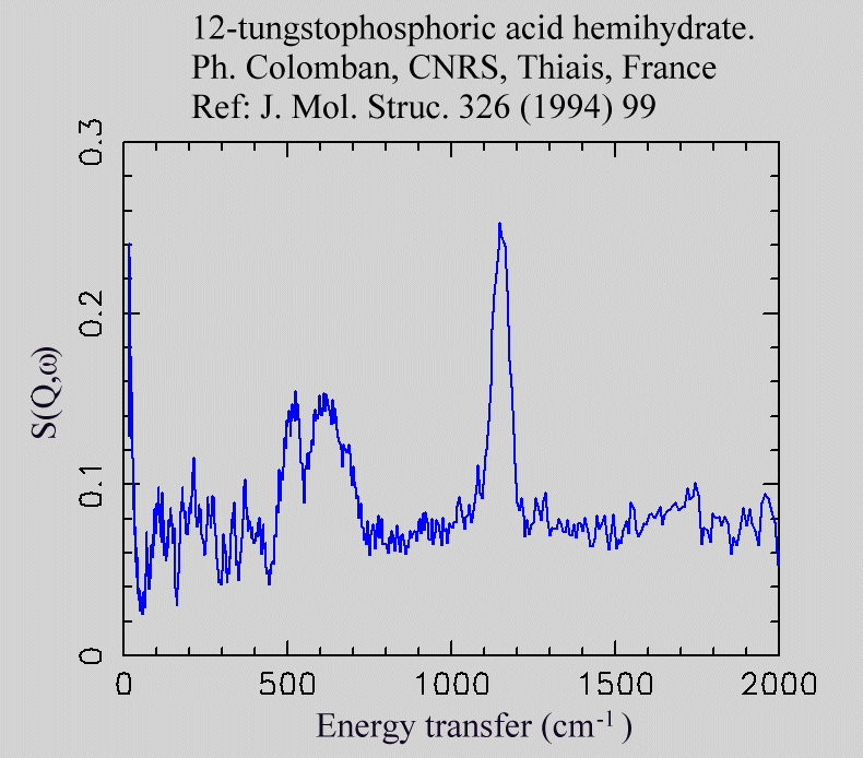 Inelastic Neutron Scattering spectrum of 12-Tungstophosphoric acid hemihydrate, H3PW12O40.0.5H2O, measured on the TFXA instrument.