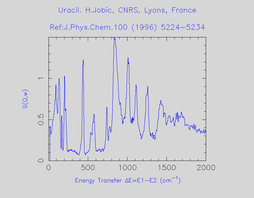 Inelastic Neutron Scattering spectrum of Uracil, C₄H₄N₂O₂, measured on the TFXA instrument.