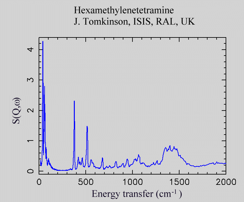 Inelastic Neutron Scattering spectrum of Hexamethylenetetramine, C₆H₁₂N₄, measured on the TOSCA-1 instrument.