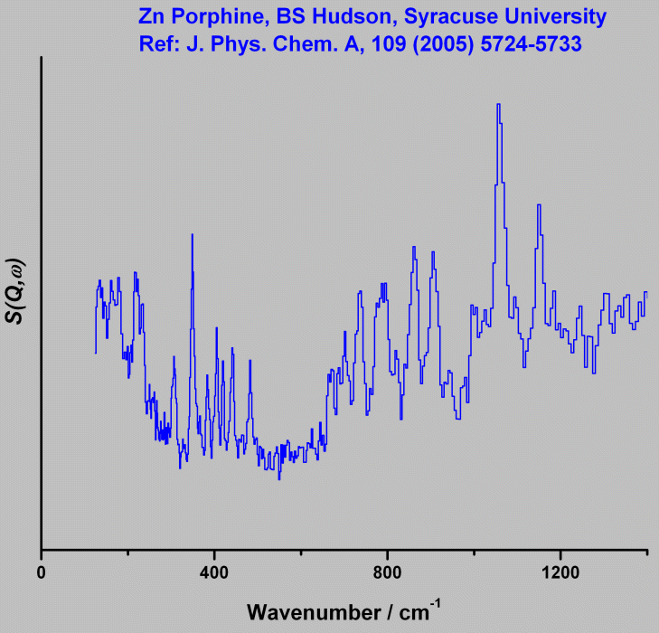Inelastic Neutron Scattering spectrum of Porphine zinc complex, ZnC₂₀H₁₂N₄, measured on the TOSCA instrument.