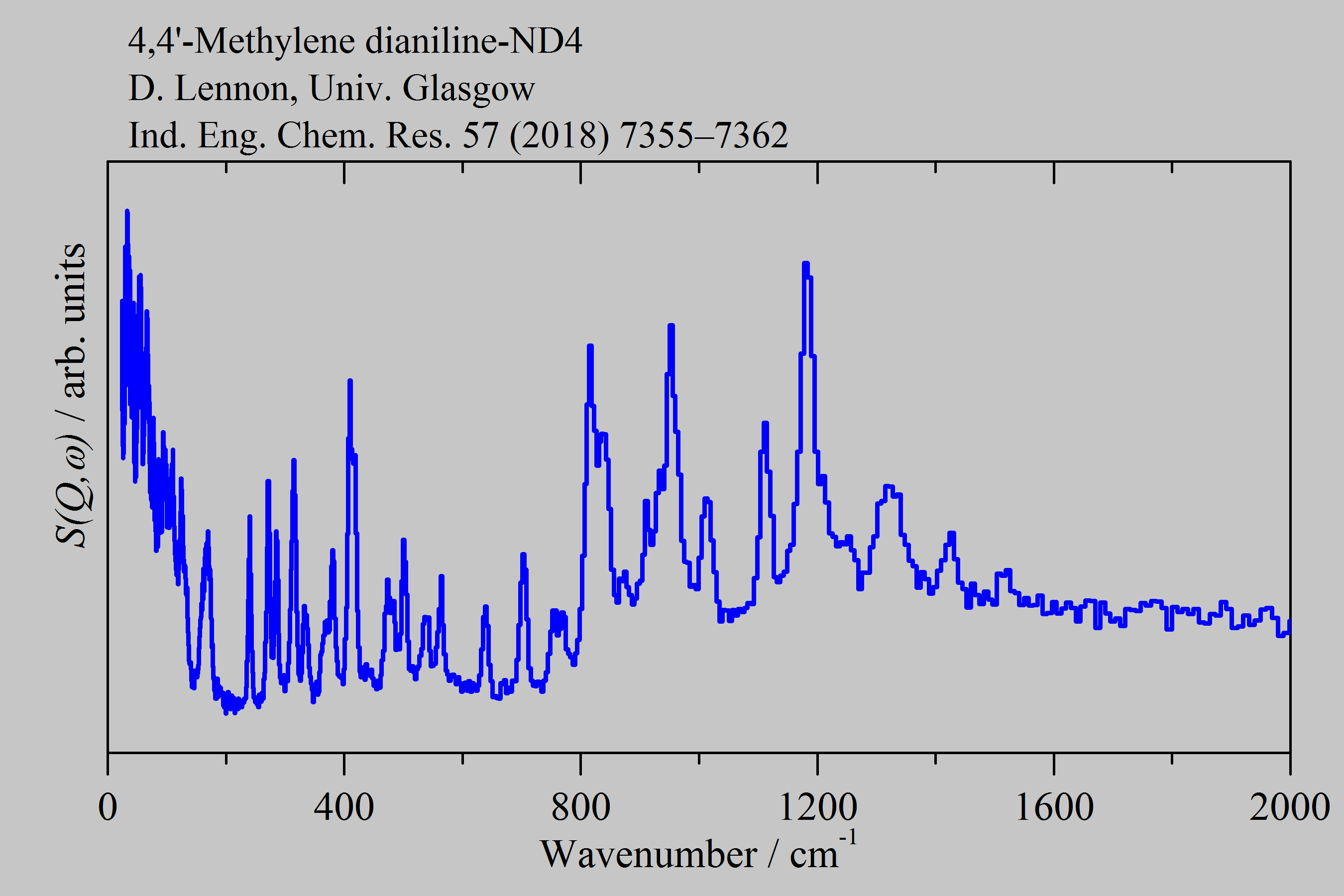 Inelastic Neutron Scattering spectrum of 4,4'-Methylene dianiline-ND4, D2NC6H4CH2C6H4ND2, measured on the TOSCA instrument.