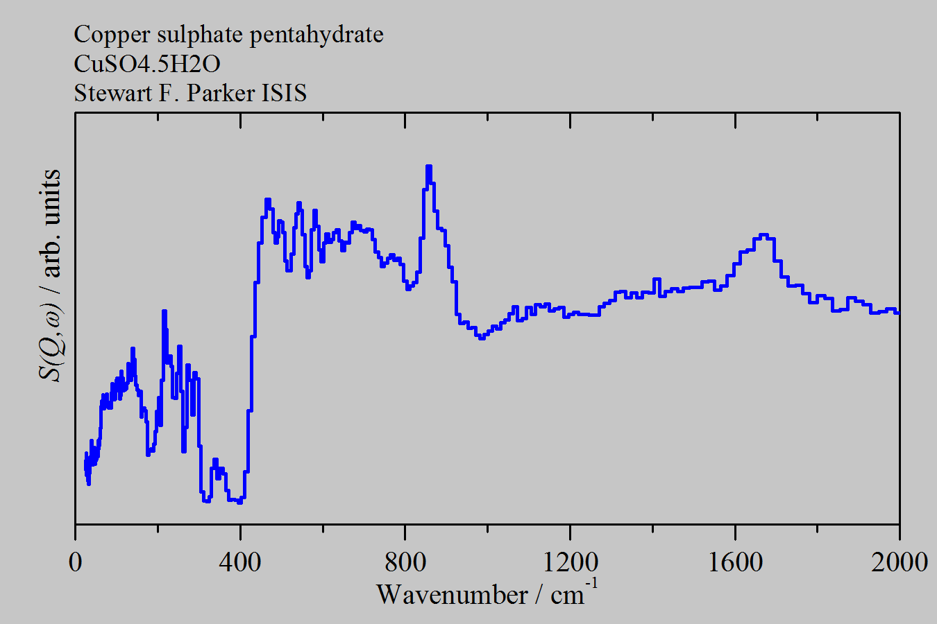 Inelastic Neutron Scattering spectrum of Copper sulphate pentahydrate, CuSO4.5H2O, measured on the TOSCA instrument.