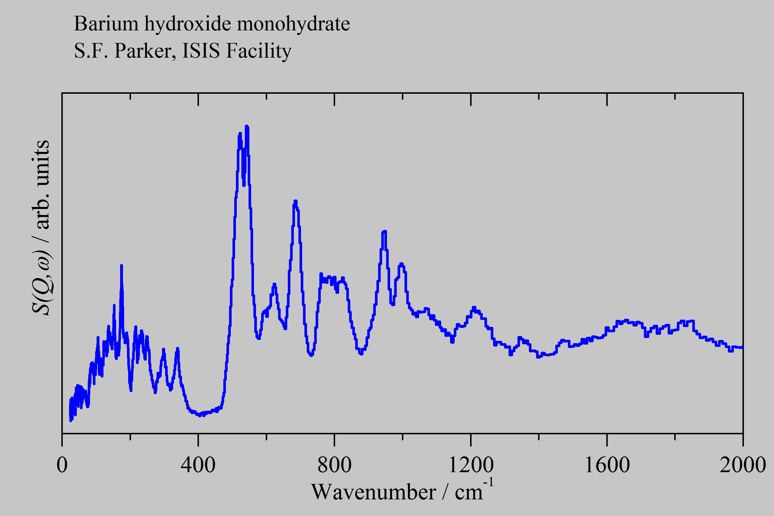 Inelastic Neutron Scattering spectrum of Barium hydroxide monohydrate, Ba(OH)2.2H2O, measured on the TOSCA instrument.