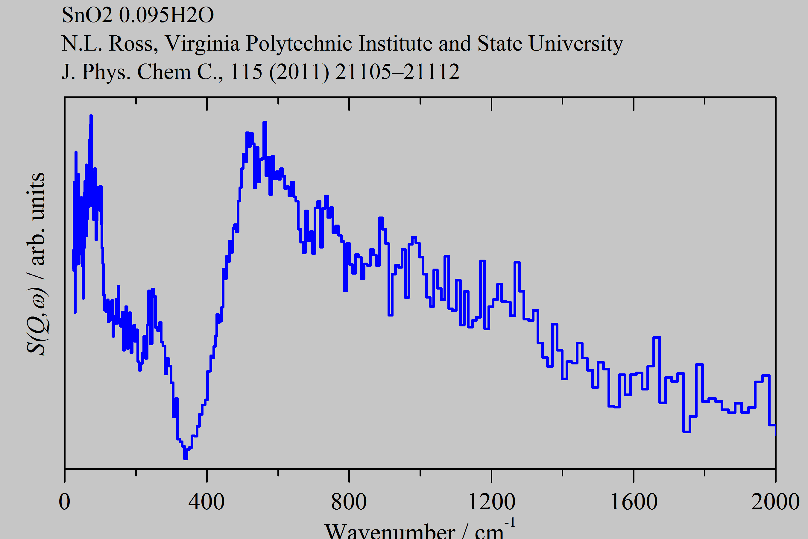 | dc.description.abstract | Inelastic Neutron Scattering spectrum of Hydrous cassiterite 6nm high water, SnO2 0.095H2O, measured on the TOSCA instrument. Core (6 nm SnO2) shell (H2O) structure. | |