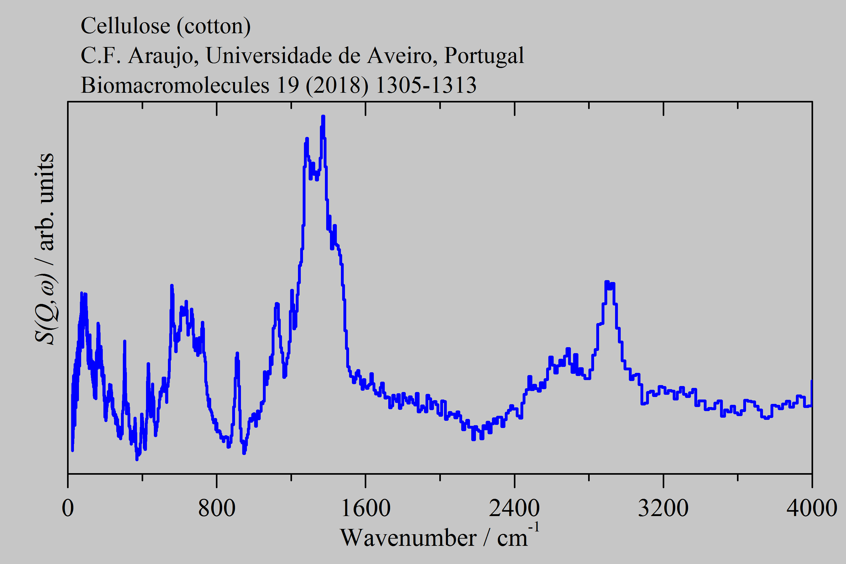 Inelastic Neutron Scattering spectrum of Cellulose (cotton), (C6H10O5)n, measured on the TOSCA instrument.
