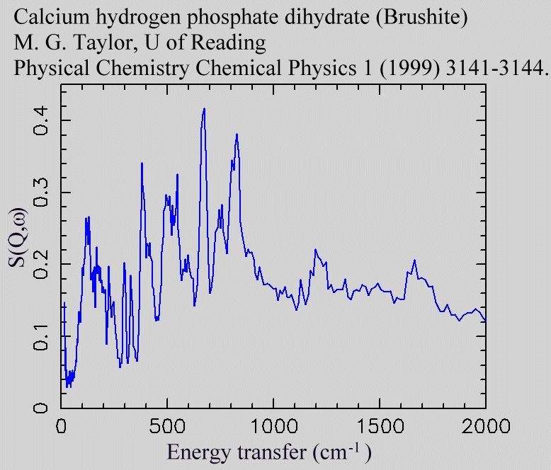 Inelastic Neutron Scattering spectrum of Brushite, CaHPO4.2H2O, measured on the TFXA instrument.
