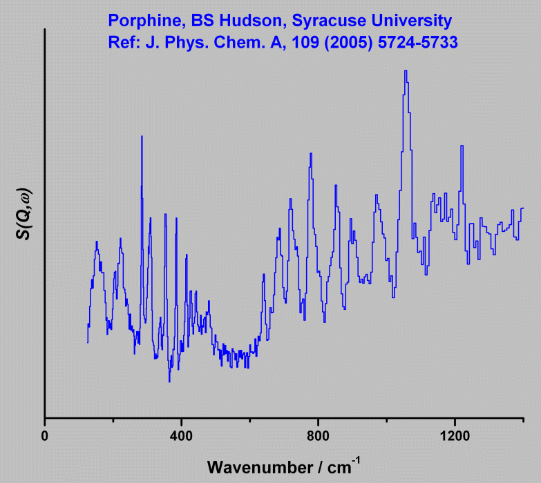 Inelastic Neutron Scattering spectrum of Porphine, C₂₀H₁₄N₄, measured on the TOSCA instrument.