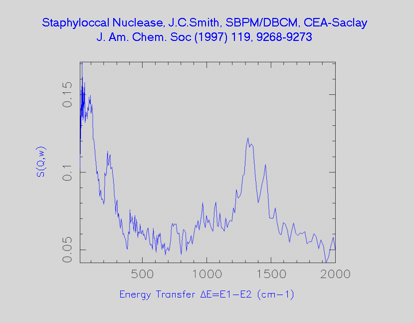 Inelastic Neutron Scattering spectrum of Staphyloccal nuclease, , measured on the TFXA instrument.