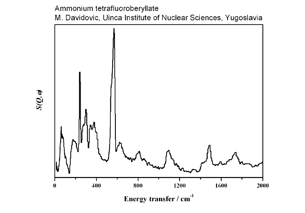 Inelastic Neutron Scattering spectrum of Ammonium tetrafluoroberyllate, NH₄BeF₄, measured on the TFXA instrument.