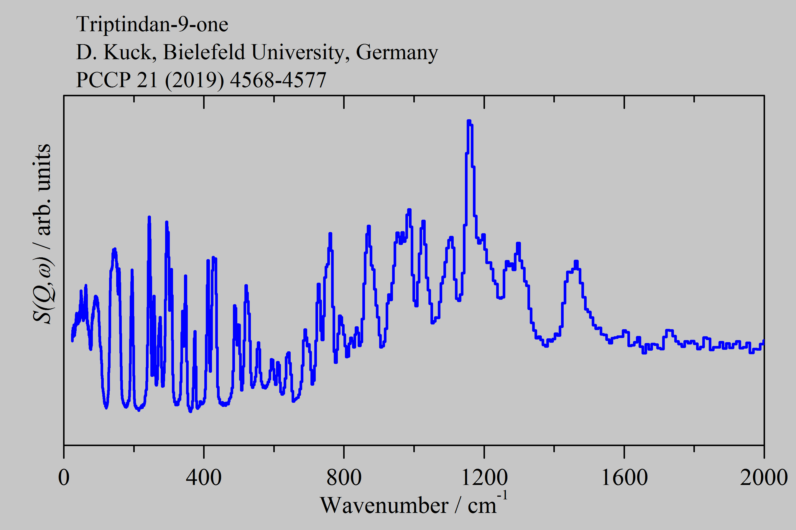 Inelastic Neutron Scattering spectrum of Triptindan-9-one, C23H16, measured on the TOSCA instrument.