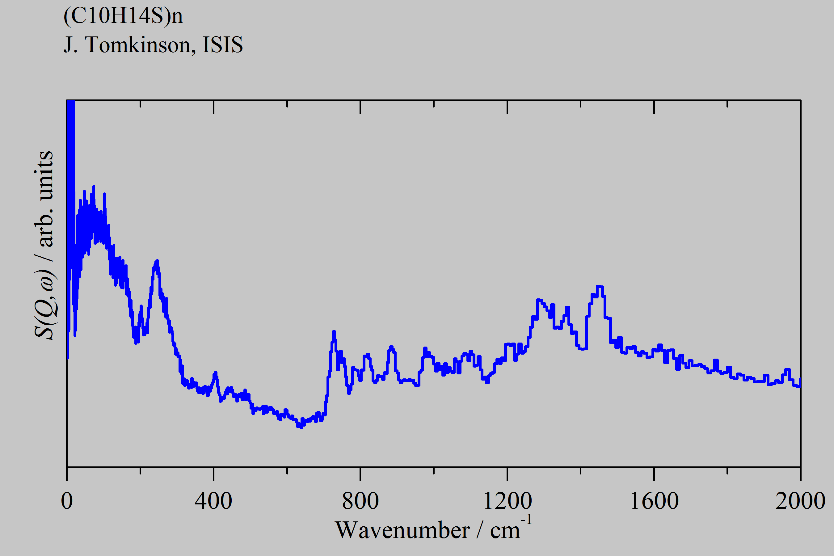 Inelastic Neutron Scattering spectrum of Poly(3-hexylthiophene-2,5-diyl), (C₁₀H₁₄S)n, measured on the TOSCA instrument. P3HT.