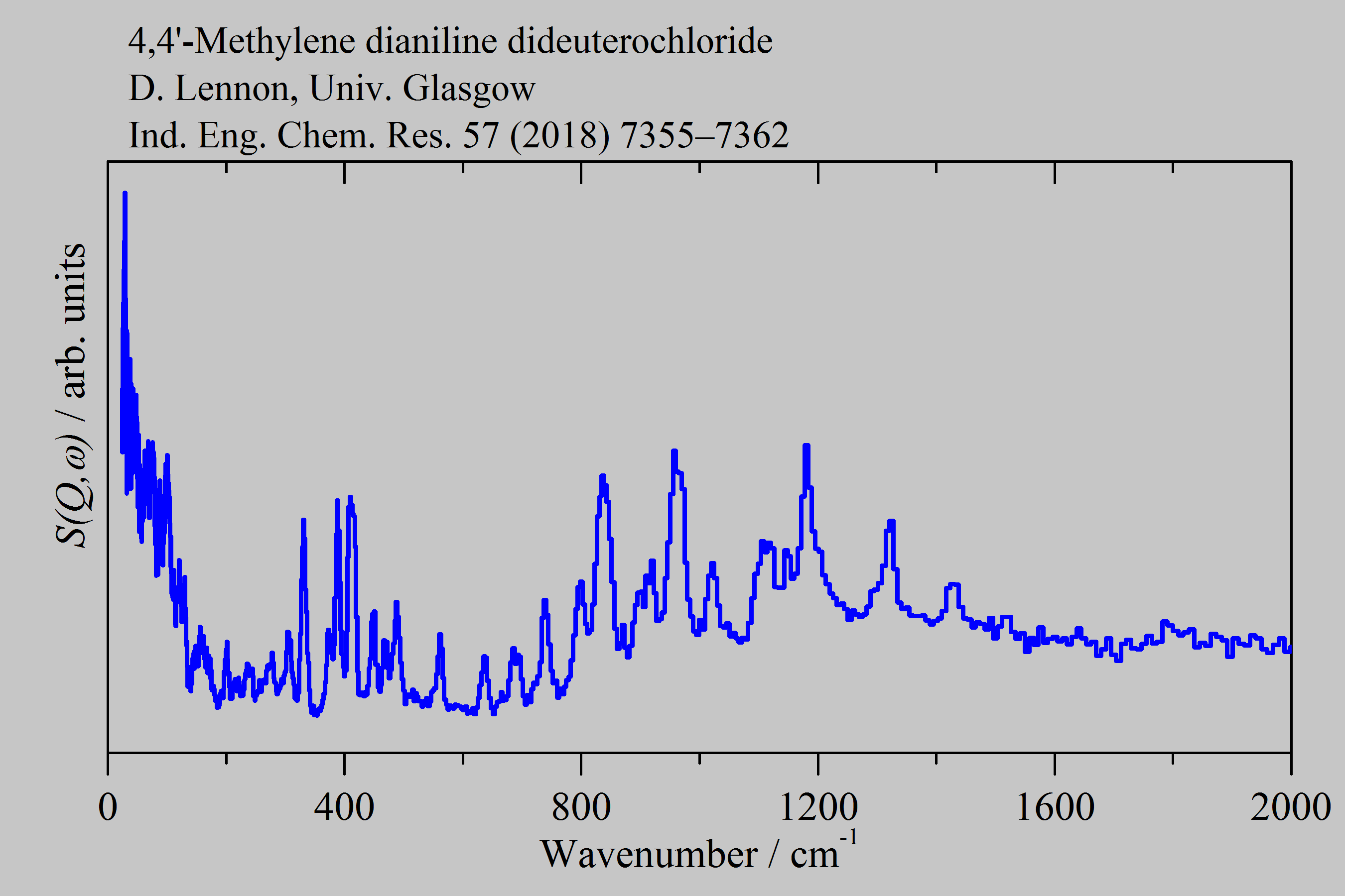 Inelastic Neutron Scattering spectrum of 4,4'-Methylene dianiline dideuterochloride, D2NC6H4CH2C6H4DH2.2DCl, measured on the TOSCA instrument.