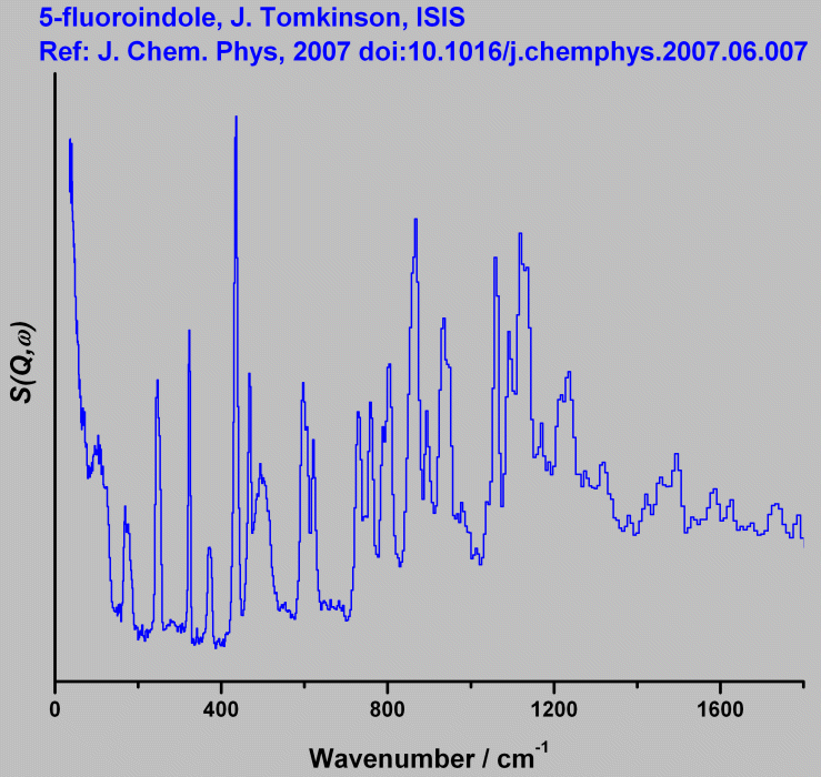 | dc.description.abstract | Inelastic Neutron Scattering spectrum of 5- Fluoroindole, C₈H₆NF, measured on the TOSCA instrument. | |