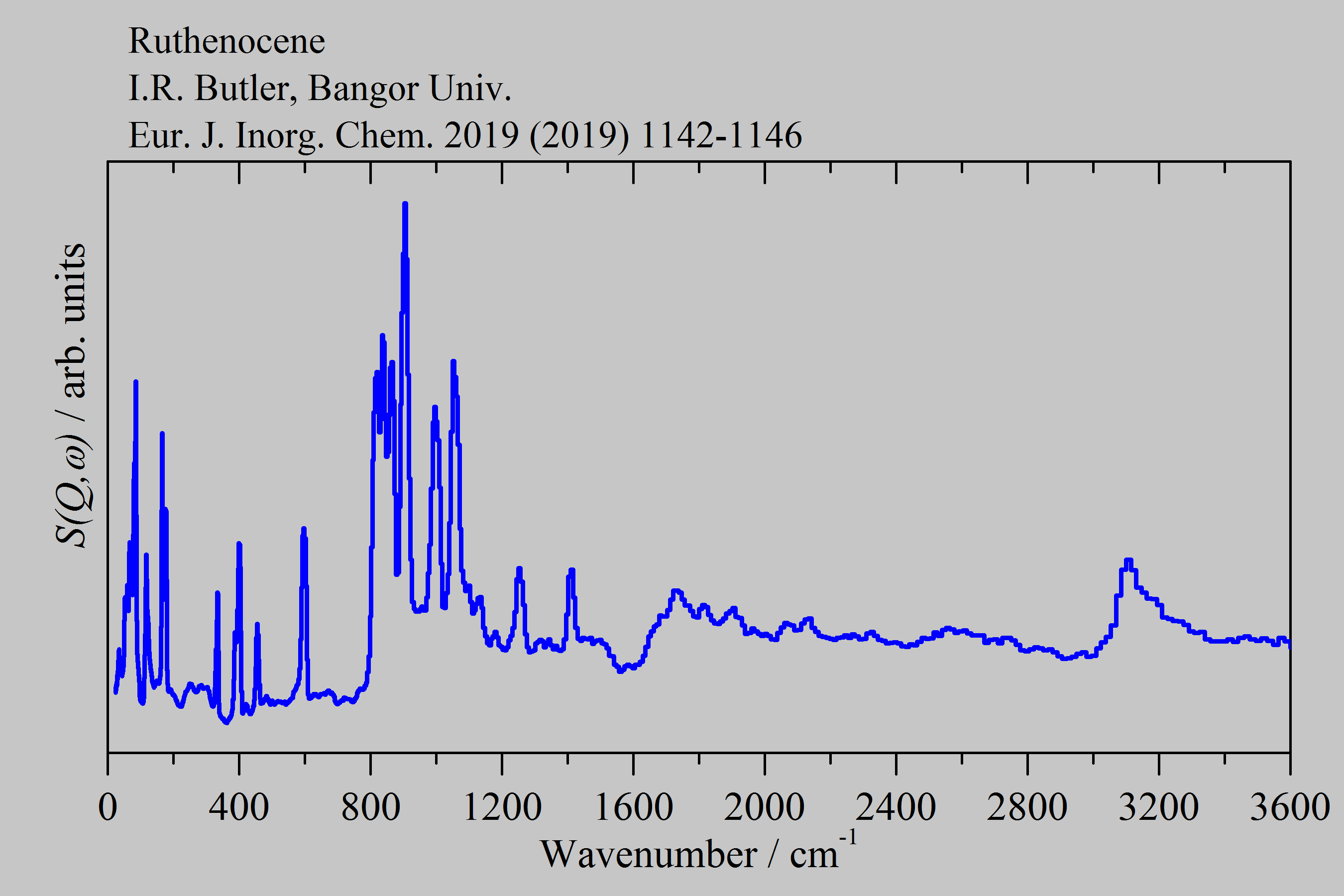 Inelastic Neutron Scattering spectrum of Ruthenocene, Ru(C5H65)2, measured on the TOSCA instrument.
