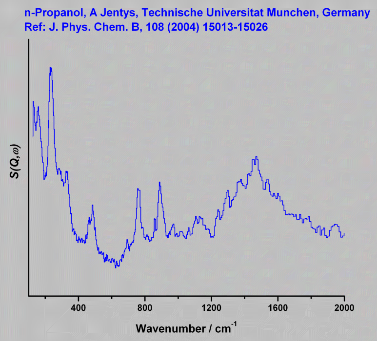 Inelastic Neutron Scattering spectrum of Propan-1-ol, C₃H₇OH, measured on the TOSCA instrument. n-Propanol.