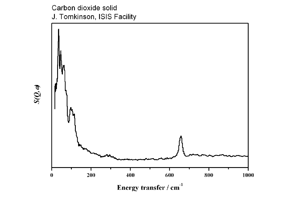 Inelastic Neutron Scattering spectrum of Carbon dioxide, CO₂, measured on the TFXA instrument.