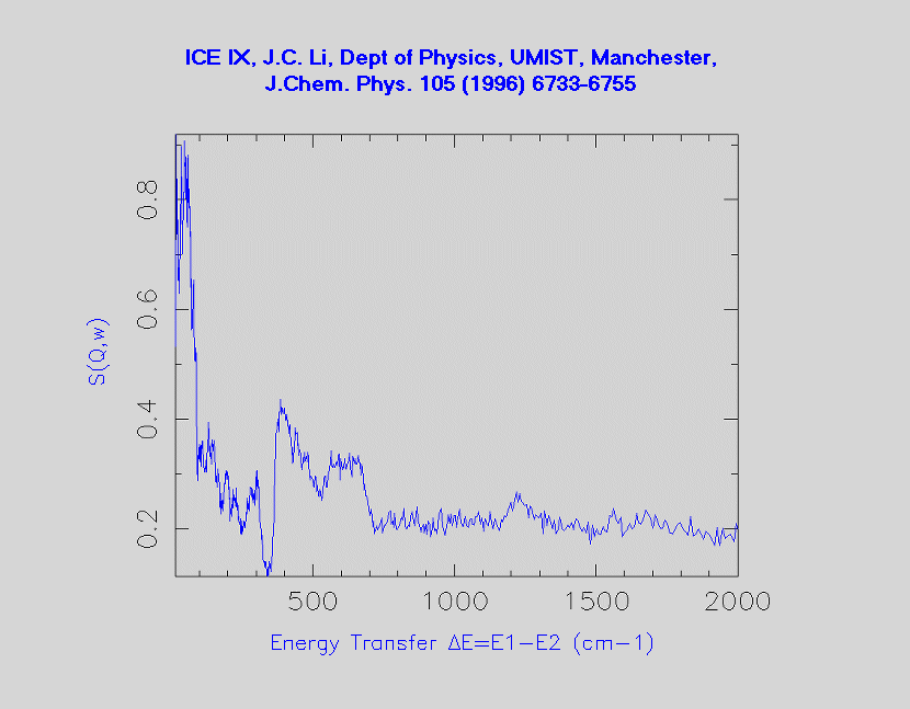 Inelastic Neutron Scattering spectrum of Ice IX, H₂O, measured on the TFXA instrument.